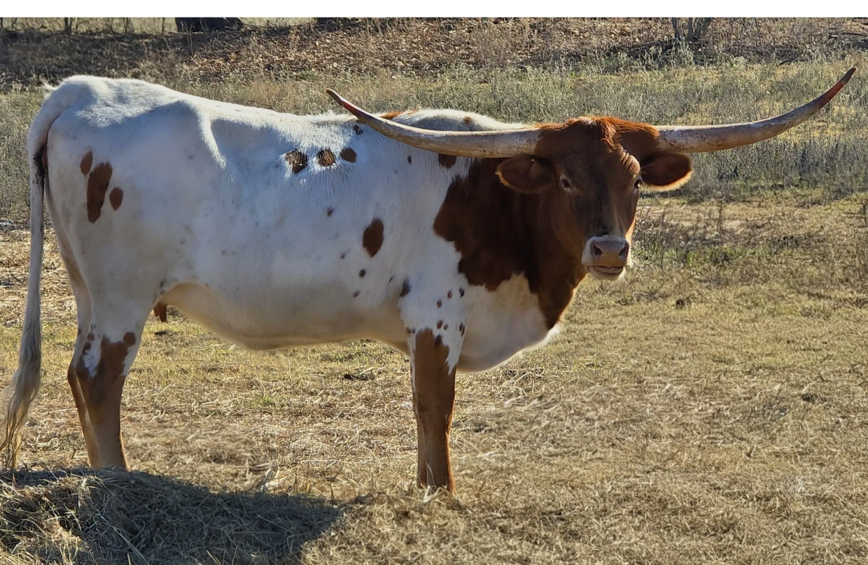 LL AMIGA'S CARLEE IS A FEMININE YOUNG FEMALE CARRYING THE STRONG MATERNAL INFLUENCE OF THE AMIGA LINE.SHE DISPLAYS A REFINED FRAME WITH SOLID BONE AND CLEAN LATERAL HORN DIRECTION, GIVING HER A BALANCED AND TRADITIONAL LONGHORN LOOK.