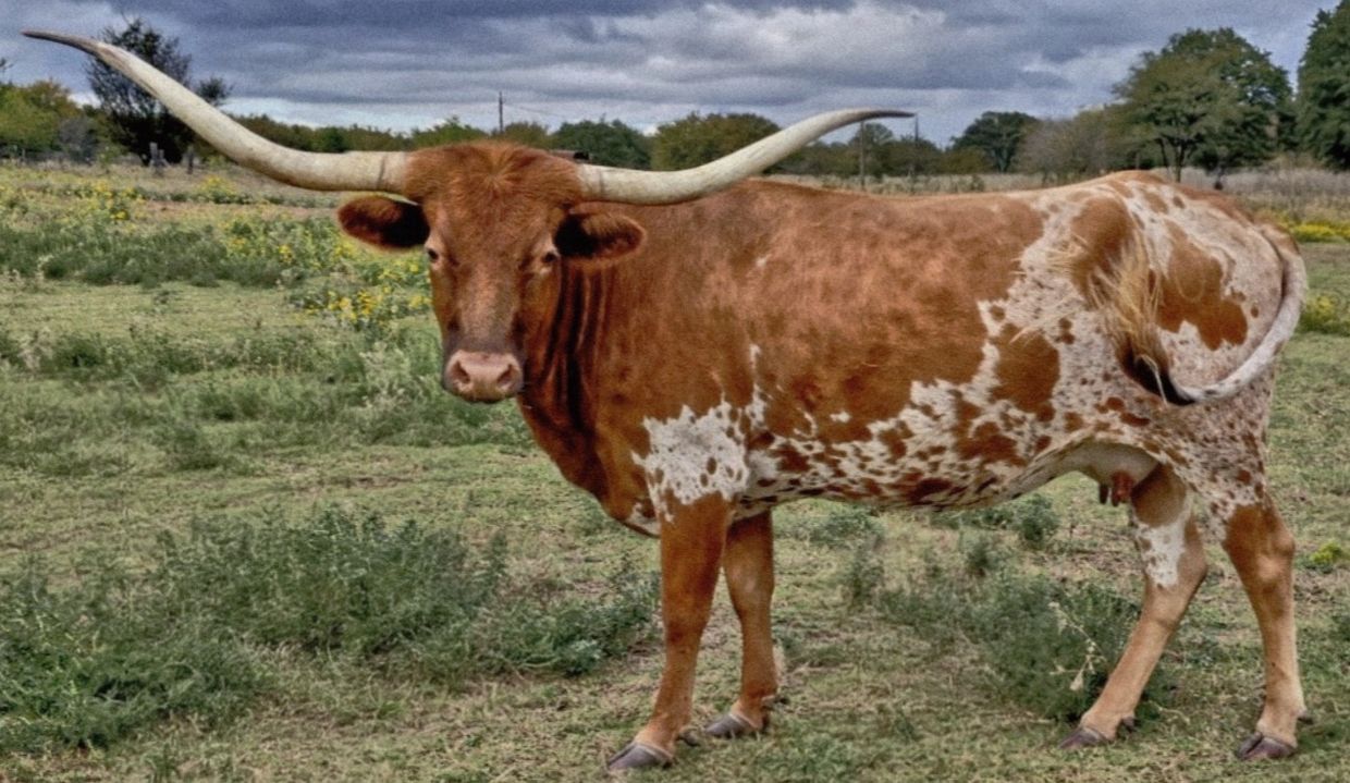 BELLE IS EXCEPTIONALLY SWEET WITH A FUNNY, CURIOUS PERSONALITY. SHE ENJOYS ATTENTION AND IS ALWAYS THE FIRST TO SEE WHATS GOING ON. SHE'S AN ATTENTIVE, DEPENDABLE MOTHER AND HAS CONSISTENTLY PRODUCED QUALITY HEIFERS FOR LEWIS LONGHORNS, PASSING ON HER FEMININITY, HORN DIRECTION, AND CALM DISPOSITION.